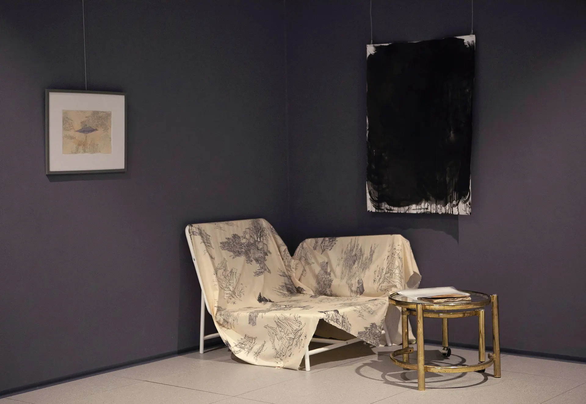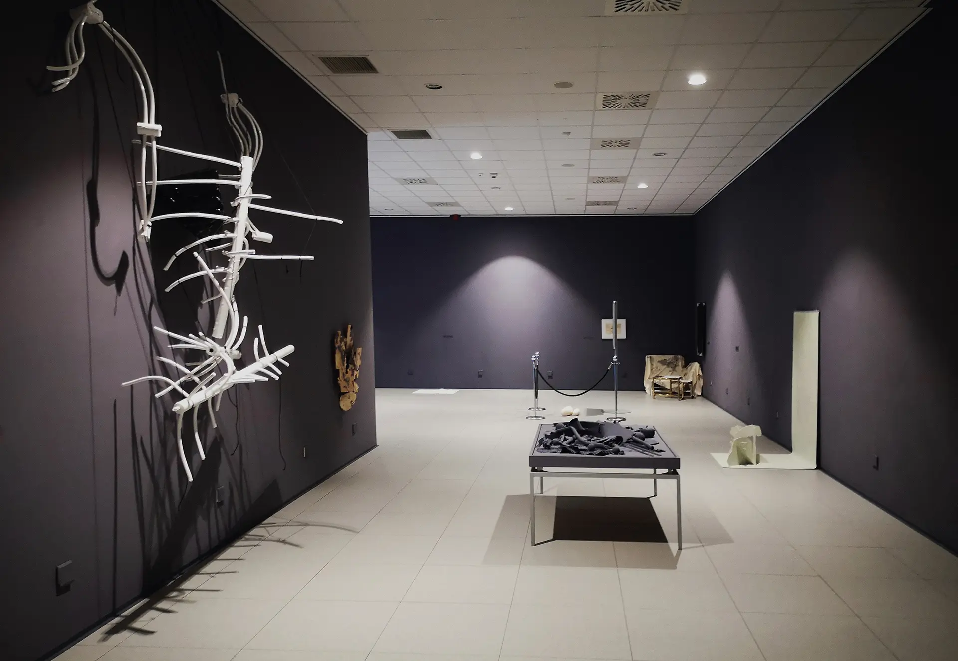 Widok ekspozycji, po lewej: Artur Blusiewicz, Bez tytułu,